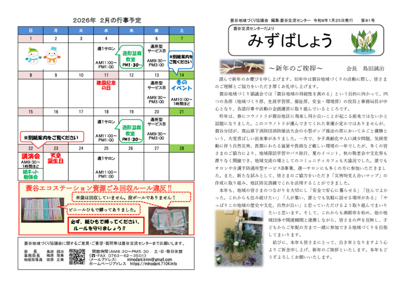 地域の皆様には各種行事には積極的に参加していただき、感想・希望・要望・意見を多く寄せていただき、より良い地域づくり活動にご協力をお願いいたします。