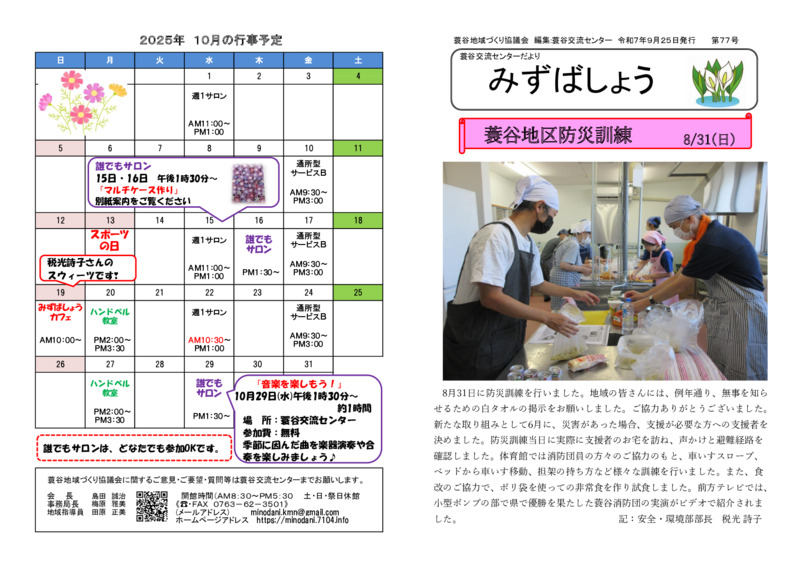 傘で作るエコバッグ製作や保冷剤を利用して作る芳香剤作りなどの手作りの教室などの楽しい活動をみんなでしています。